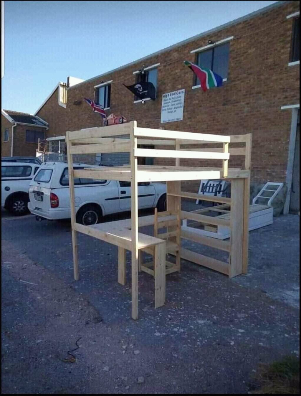 loft bed with table and small shelf