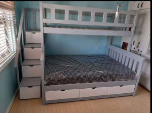 Tribunk bed with staircase and storage